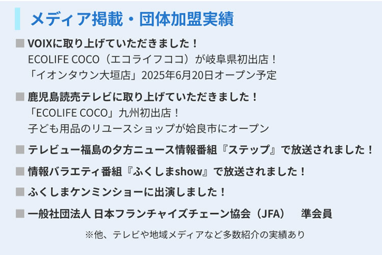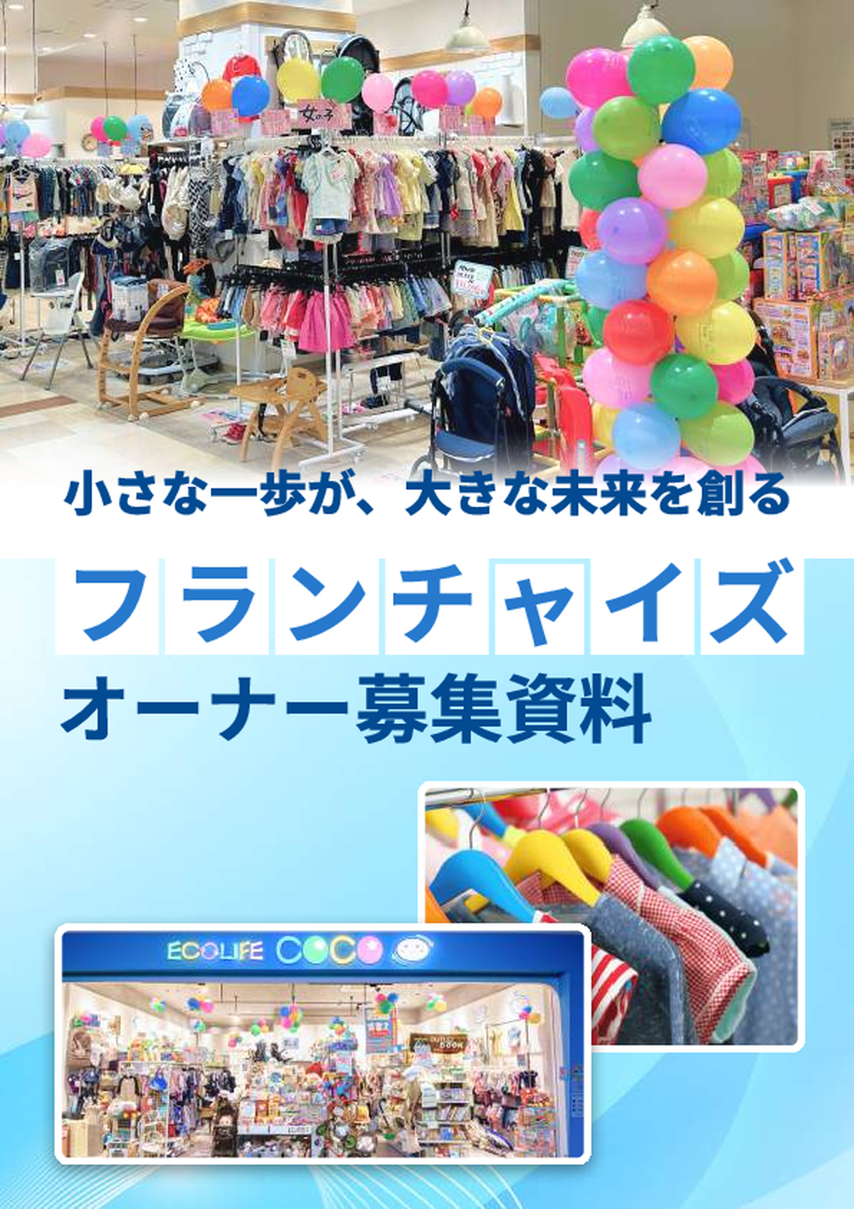 子育てママに人気のリユースショップを開業しませんか?「子供服リユース ECOLIFE COCO」フランチャイズ加盟店募集