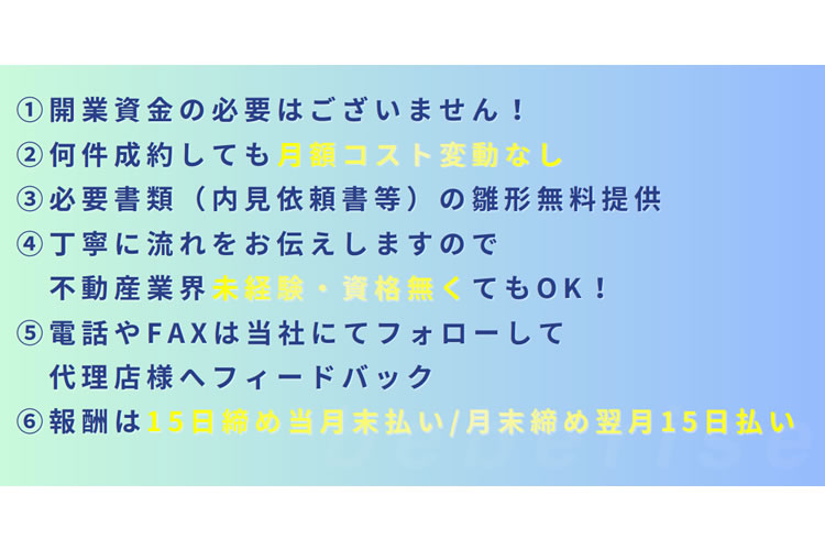起業, 高額報酬, 代理店, エージェント, 販売店, パートナー, 複業, 募集, 仲介, 独立, 開業, 不動産仲介, 副業, 不動産, サイドビジネスあなたにオススメの商材(販路が同じ)