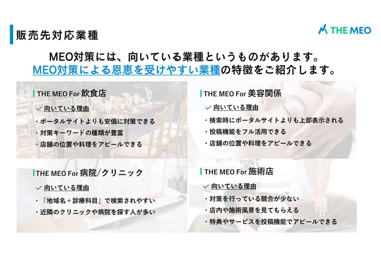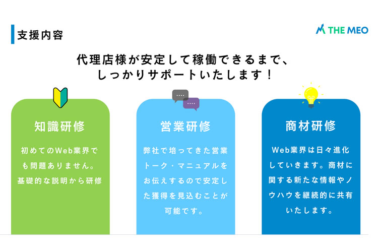 | 特長 | Web業界未経験から参入できるMEOサービスです |
