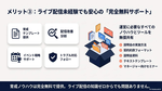 | メリット | ・初期投資ほぼゼロでスピーディーに収益化 ・紹介で終わらない「ストック収益」 ・ライブ配信未経験でも安心の「完全無料サポート」 |