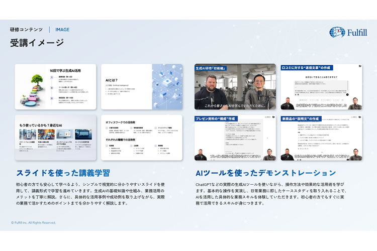 生成AIを“知る”だけでなく、“使いこなす”ことを重視した内容が、実践重視の現場に高く評価されています。