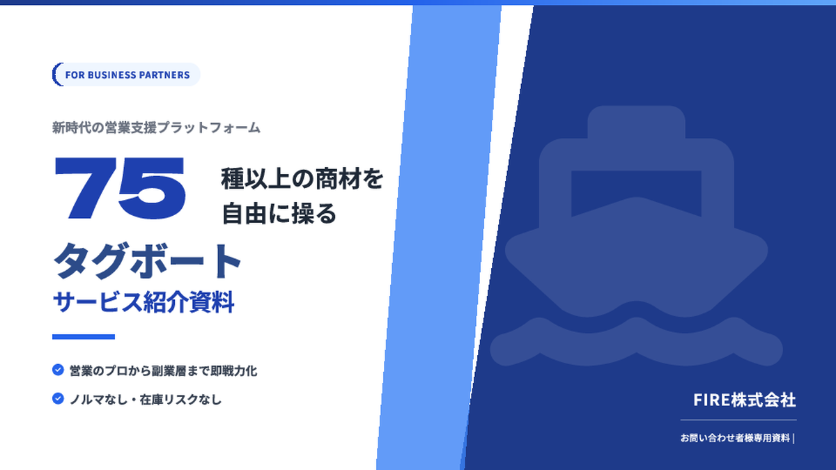 75種の商材が扱える!「タグボート商材」販売パートナー募集