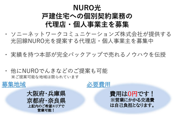 「NURO光 戸建てタイプ」販売代理店募集