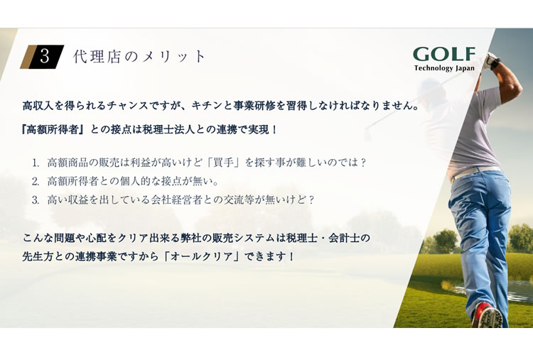 節税・ゴルフビジネス・副業・代理店募集・高額報酬