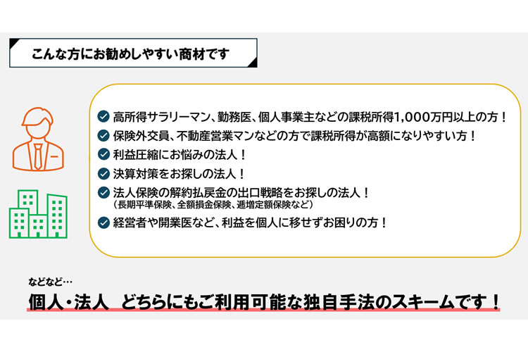 - 高所得顧客に向けた新たな節税提案を探している営業職や士業の方