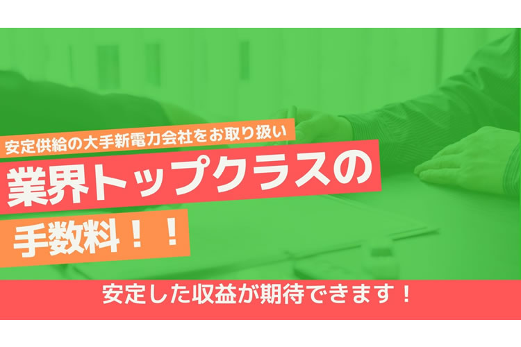 業界トップクラスの手数料設定と顧客の料金も「安くなる」電気・ガスになりメリットがある分、多くの顧客様の成約が望めます。代理店制度では、リスト提供や人材支援等のサポートも充実しております。