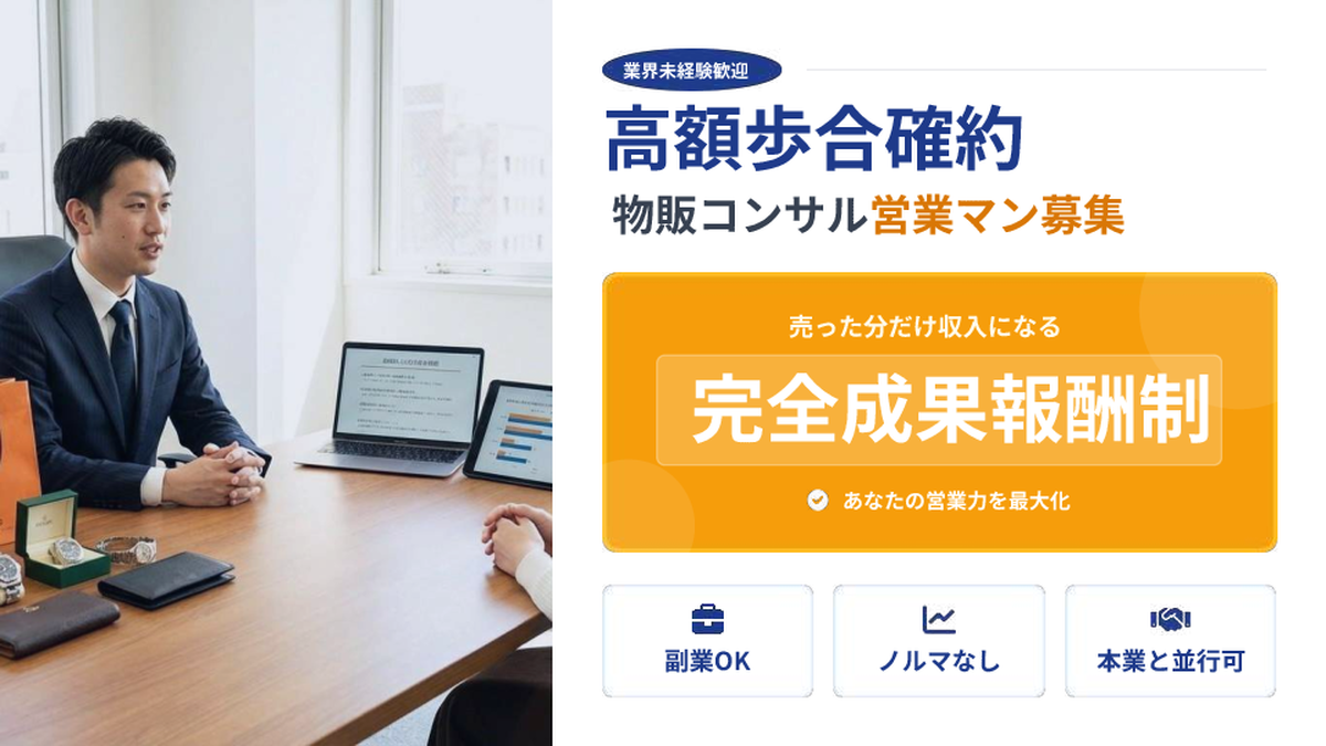 少数成約で月収100万円も目指せる!「物販コンサル」営業パートナー募集