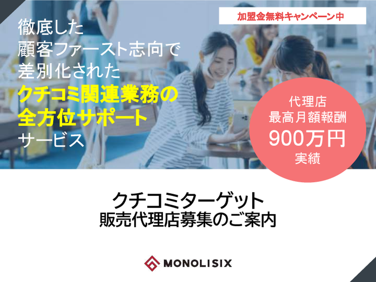 代理店加盟金無料キャンペーン実施中!「クチコミターゲット」特別販売代理店募集