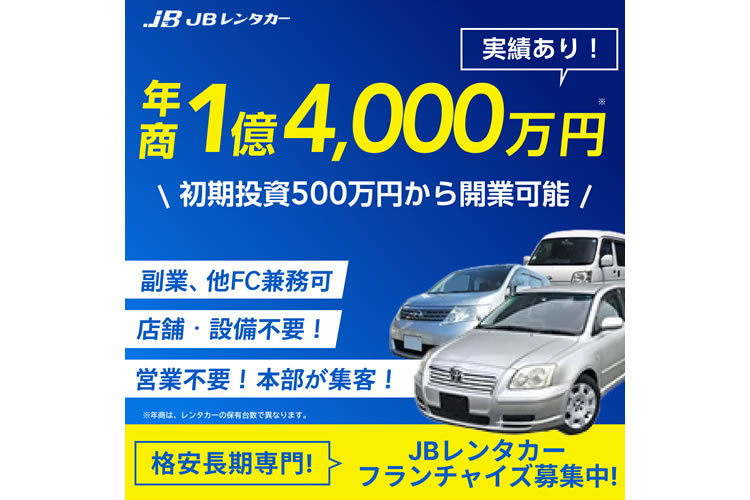 【高収益×低リスク】話題のJBレンタカーFC加盟店募集中!