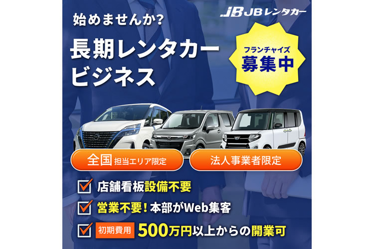 店舗不要・中長期特化!「JBレンタカー」フランチャイズ加盟店募集
