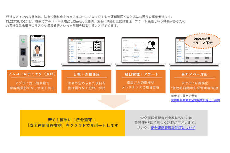 社用車管理をクラウドで一元化「FLEETGUIDE」販売代理店募集