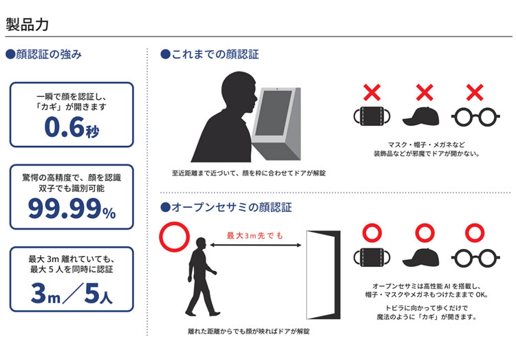 - 2 マスクOK!0.6秒で開く次世代のカギ!