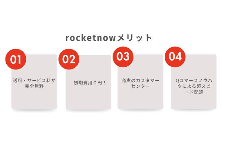 | メリット | ・送料・サービス料が完全無料 ・充実のカスタマーセンター ・Qコマースノウハ ウによる超スピード配達 |