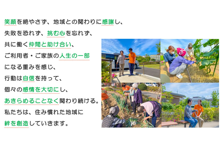 | 事業内容 | ・住宅型有料老人ホーム+お泊りデイサービス 「ケアヴィレッジライフ」事業 ・新築・全個室/24時間365日夜間対応型デイサービス 「ブルーミングケア」事業 ・地域密着型デイサービス「ぺルメールケア」事業 ・地域密着型デイサービス(自立支援特化型)「ケアフィットルーム」事業 ・介護・福祉コンサルティング事業 |