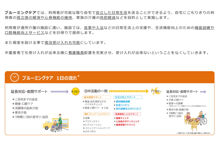 介護業界においては、「選ばれる理由」があるかどうかが稼働率に直結します。ブルーミングケアは、明確な強みを持つことで、利用者・家族双方から支持されやすいサービスとなっています。