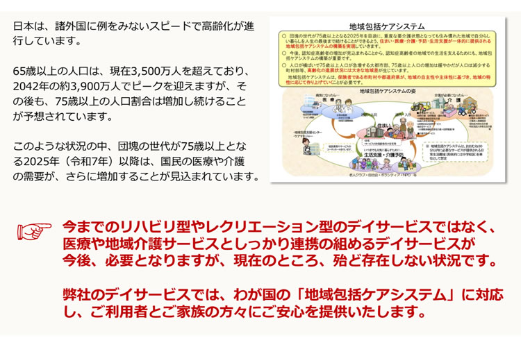 加えて、日本の高齢化に伴う介護需要の拡大を背景に、長期的な市場成長が期待できる分野であり、社会的意義と収益性を兼ね備えた持続可能なビジネスモデルです。