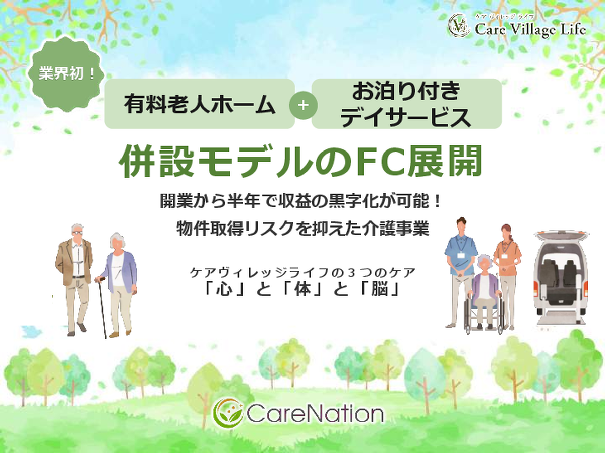 安定収益と社会貢献を両立する介護ビジネス!「有料老人ホーム×デイサービス併設モデル ケアヴィレッジライフ」フランチャイズ加盟店募集