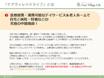 さらに、「ケアヴィレッジライフ」は地域包括ケアシステムの中心的役割を担うモデルとして設計されており、社会的な必要性も非常に高い事業です。