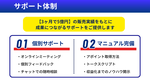 代理店様には、収益化をサポートするノウハウをご提供しております。取り組み方の流れやポイントを体系的にまとめており、スムーズにスタートいただけます。また、オンラインミーティングや個別フィードバック、チャット相談などのサポート体制も整っており、活動開始後も継続的に支援を受けることができます。