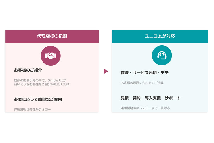 営業やITの専門知識がなくても安心して取り組めるパートナー制度であり、代理店の役割は既存顧客の中からニーズのありそうな企業を紹介するだけというシンプルな仕組みです。商談や契約、導入支援、運用フォローはすべて弊社が対応するため、代理店側の負担は最小限に抑えられます。