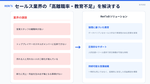 既存顧客への再提案や、クロージング時のクロスセルとして活用できるため、営業効率を落とさずに単価を高めることが可能です。教育コストも最小限で済み、短期間で収益化が見込めます。