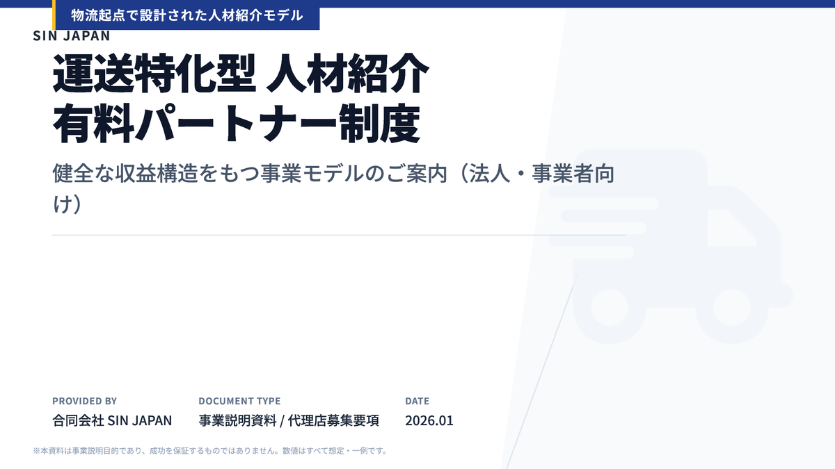 継続収益が狙える人材紹介ビジネス!「運送特化型 人材紹介」有料パートナー募集