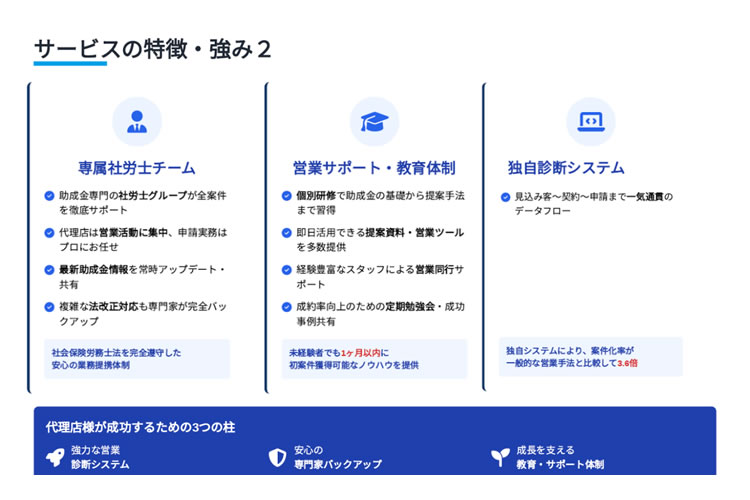 営業初心者でも不安なく取り組めるだけでなく、士業や法人営業の経験者なら、より高い成果が狙えます。
