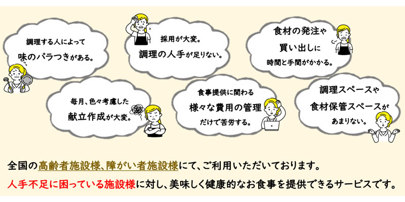 - 1 誰でも簡単調理、施設の人手不足にも対応できる!高齢者施設や障がい者施設のお悩みを解決するサービスです!
