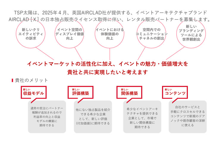 イベント建築の常識を変える「AIRCLAD」レンタル販売パートナー募集
