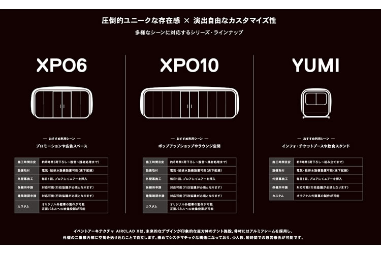 「AIRCLAD」は、英国AIRCLAD社が展開する、先鋭的かつ高デザイン性を誇るイベントアーキテクチャです。