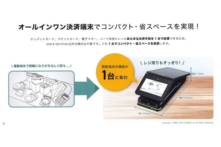 「stera pack」は、30種類以上の決済手段に対応できるオールインワン型端末です。