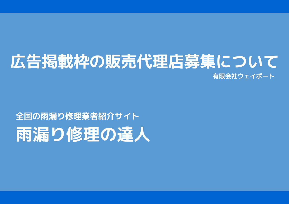 安定のストック収益!全国250社以上の掲載実績で売りやすい!「雨漏りの達人」販売代理店募集