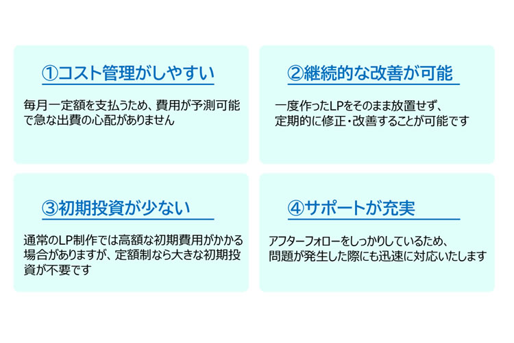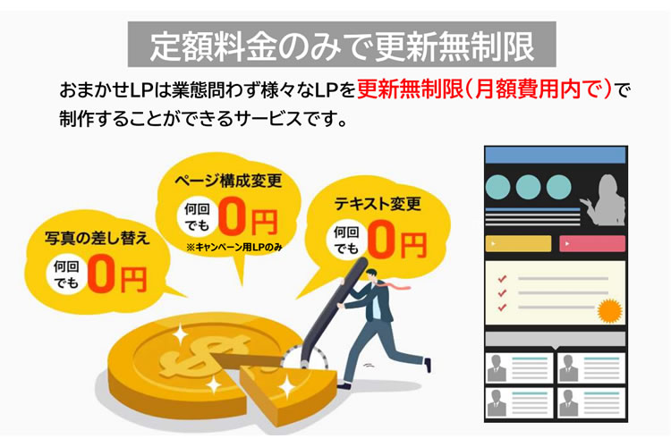 - 1 プロの手で魅力が伝わるLPに仕上げます!定額制でLP制作・修正・更新作業に対応!