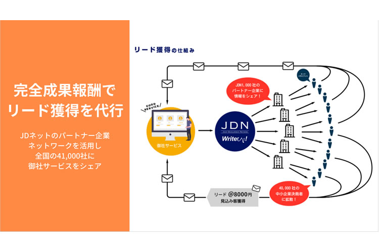 完全成果報酬で リード獲得を代⾏!「販売促進・代理店構築 JDネット for Business」販売パートナー募集