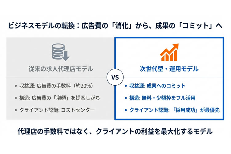 これからの時代、「広告費を売る」のではなく「採用成功を届ける」ことが求められています。当サービスはその変化に対応した、まさに次世代型の採用支援モデルです。